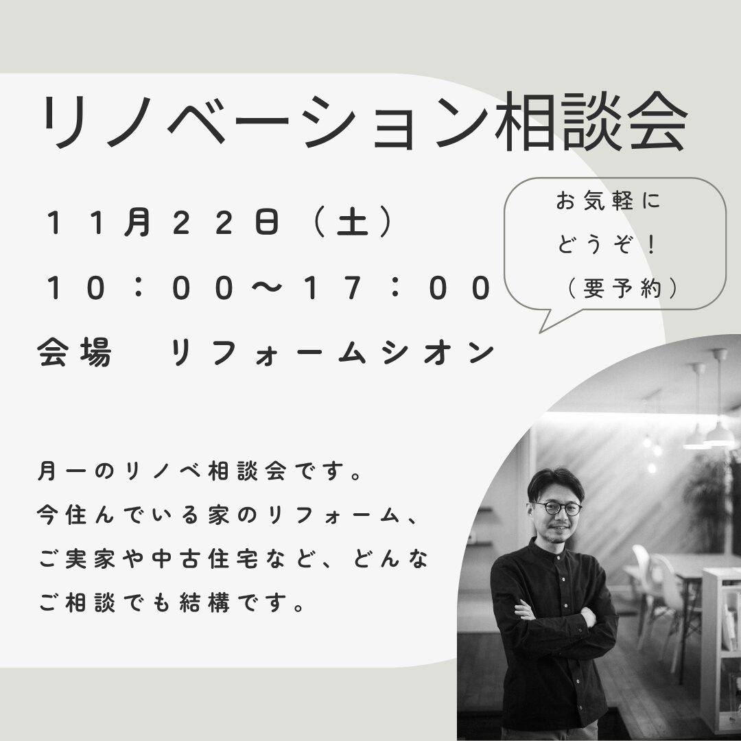 11月の相談会を開催します。 場所 リフォームシオン ショールーム 日時 11月22日(土) 時間 10:00~17:00の間 1組様1時間程度 予約制となりますので、お問い合わせフォームにてご予約ください。 <<BMデ